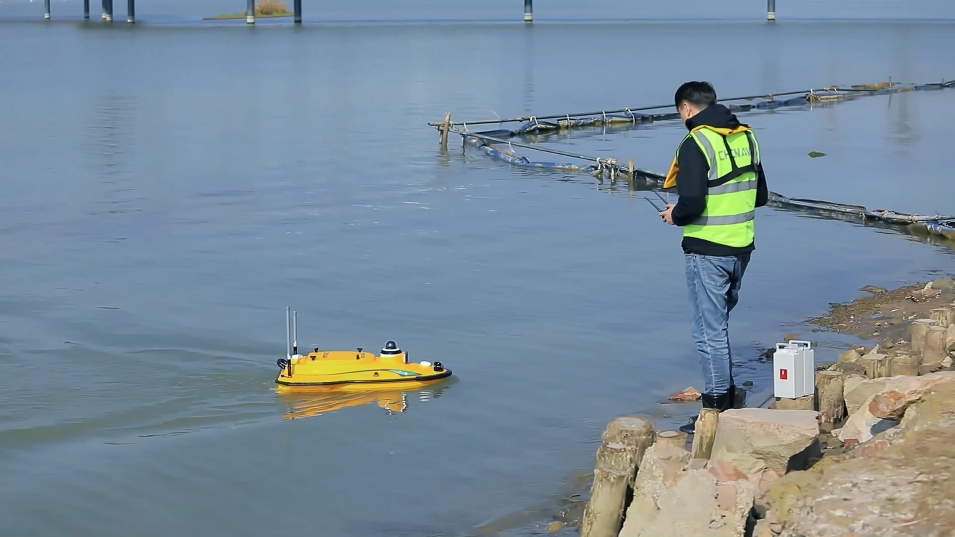 Neben dem autonomen Betrieb kann das APACHE 3 jederzeit auch manuell gesteuert werden. Diese Funktion wird insbesondere beim Zuwasserlassen, in schwer zugänglichen Bereichen oder zur gezielten Ergänzung von Messdaten genutzt. Der Bediener kann das System flexibel navigieren, um beispielsweise Hindernisse zu umfahren oder spezifische Messpunkte anzufahren. In der Praxis wird die manuelle Steuerung häufig mit dem autonomen Modus kombiniert: Während die Hauptvermessung automatisiert entlang geplanter Linien erfolgt, ermöglicht die manuelle Kontrolle zusätzliche Flexibilität und maximale Effizienz im Feldeinsatz.