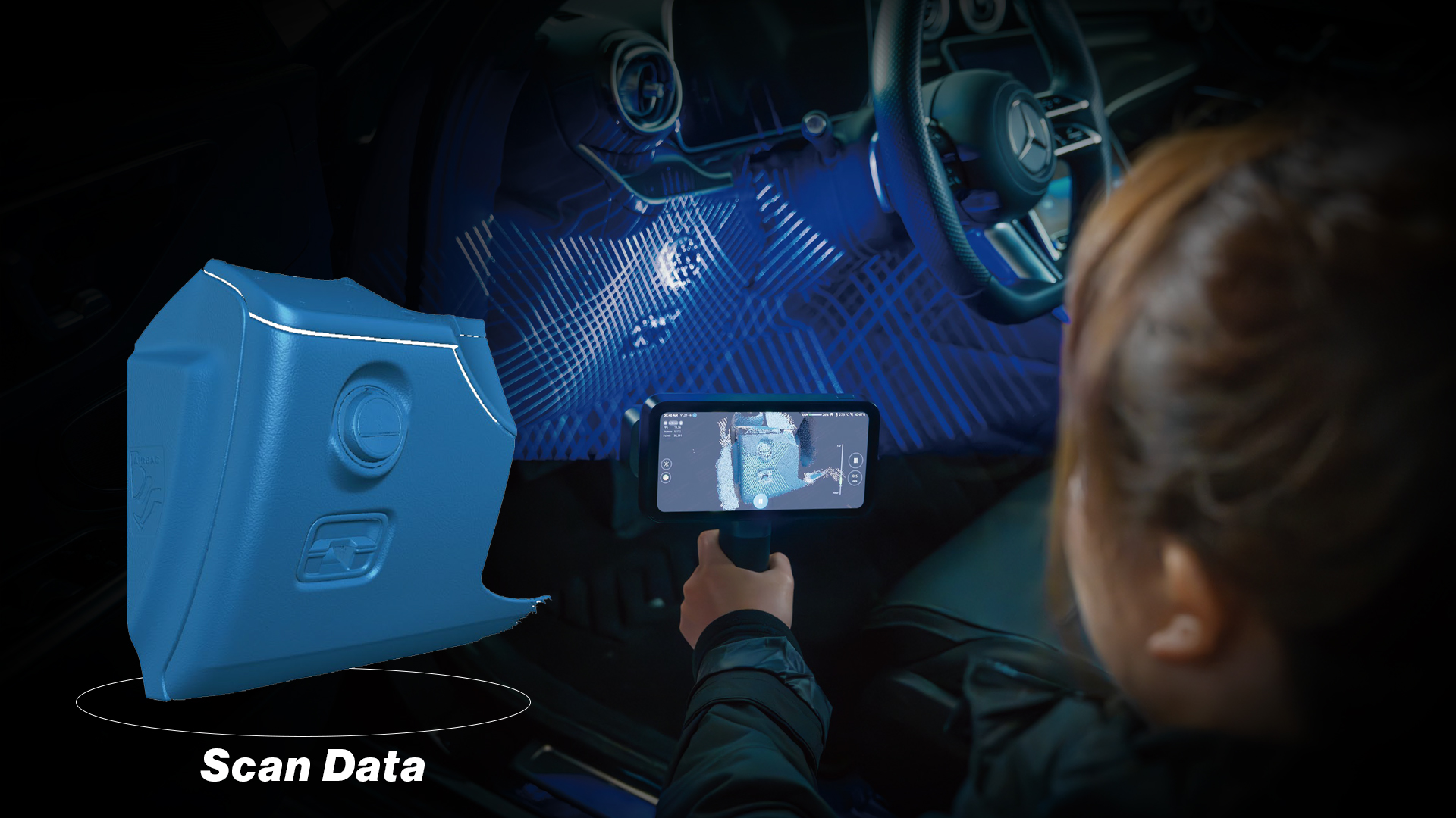 A major advantage is the ability to capture even difficult materials, such as dark or reflective surfaces, without the need for scan spray. This saves time and reduces additional effort.